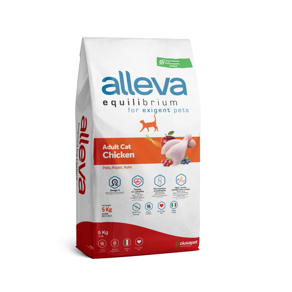Le Crocchette Alleva Equilibrium Adults al Pollo da 5 kg offrono un’alimentazione completa e bilanciata per gatti adulti. Grazie alla formula low grain con riso, garantiscono alta digeribilità e un apporto energetico costante, per sostenere la vitalità quotidiana senza sovraccaricare l’organismo.
