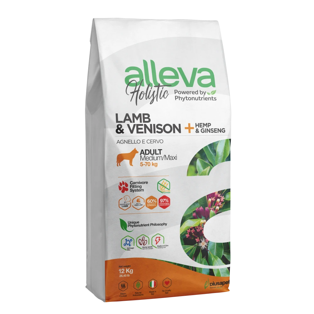 Le crocchette cervo e agnello della linea Holistic di Alleva rappresentano una soluzione nutrizionale completa e grain free, pensata appositamente per soddisfare le esigenze dei cani adulti. Questa combinazione esclusiva di carni selezionate garantisce un alto contenuto proteico, grazie all’utilizzo di carne fresca e disidratata, offrendo al tuo cane un pasto altamente appetibile e ricco di aminoacidi essenziali, fondamentali per il mantenimento della salute e della vitalità.
