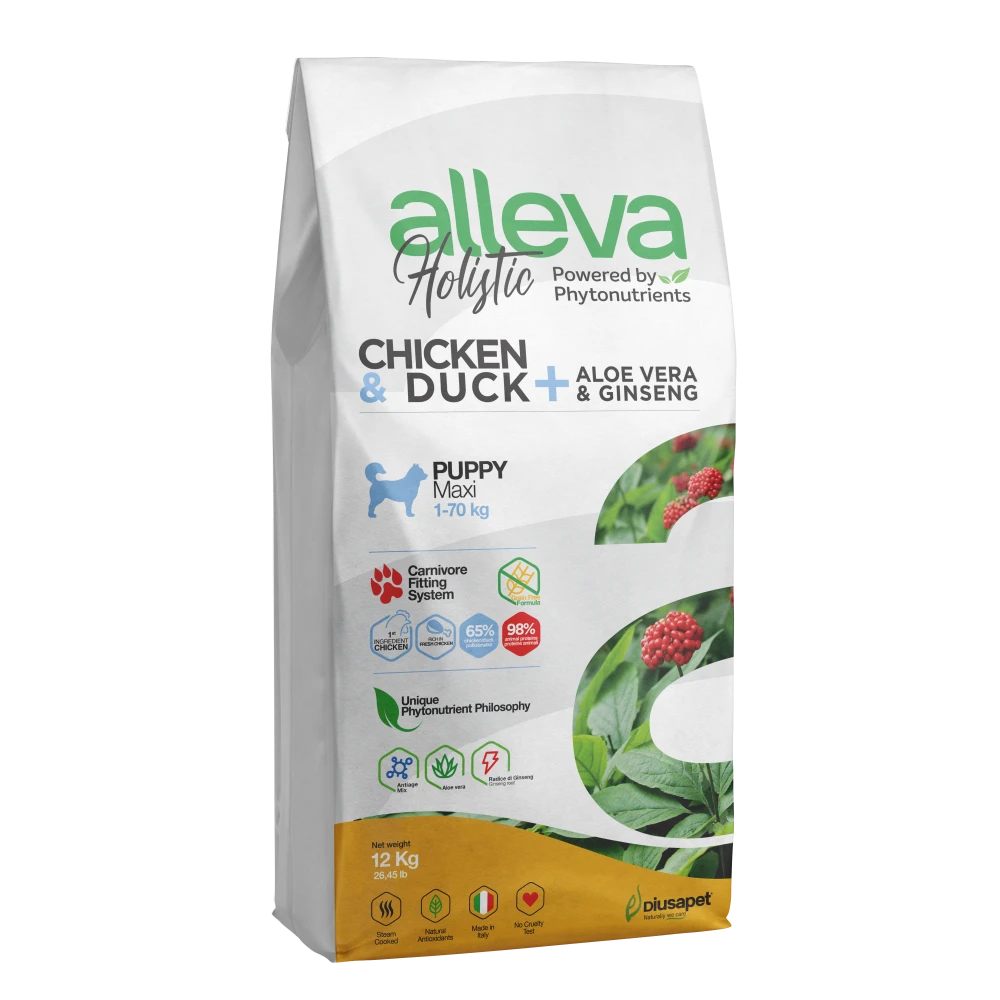 Le crocchette per cani pollo e anatra della linea Holistic, Alleva, sono completamente grain free e ad alto contenuto di proteine da carne disidratata e fresca. In questo modo sono garantite massima appetibilità e carico di aminoacidi essenziali.