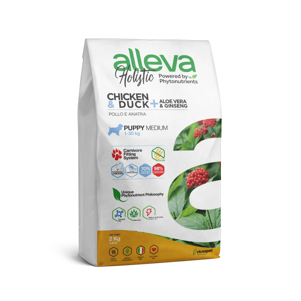 Le crocchette per cani pollo e anatra della linea Holistic, Alleva, sono completamente grain free e ad alto contenuto di proteine da carne disidratata e fresca. In questo modo sono garantite massima appetibilità e carico di aminoacidi essenziali.